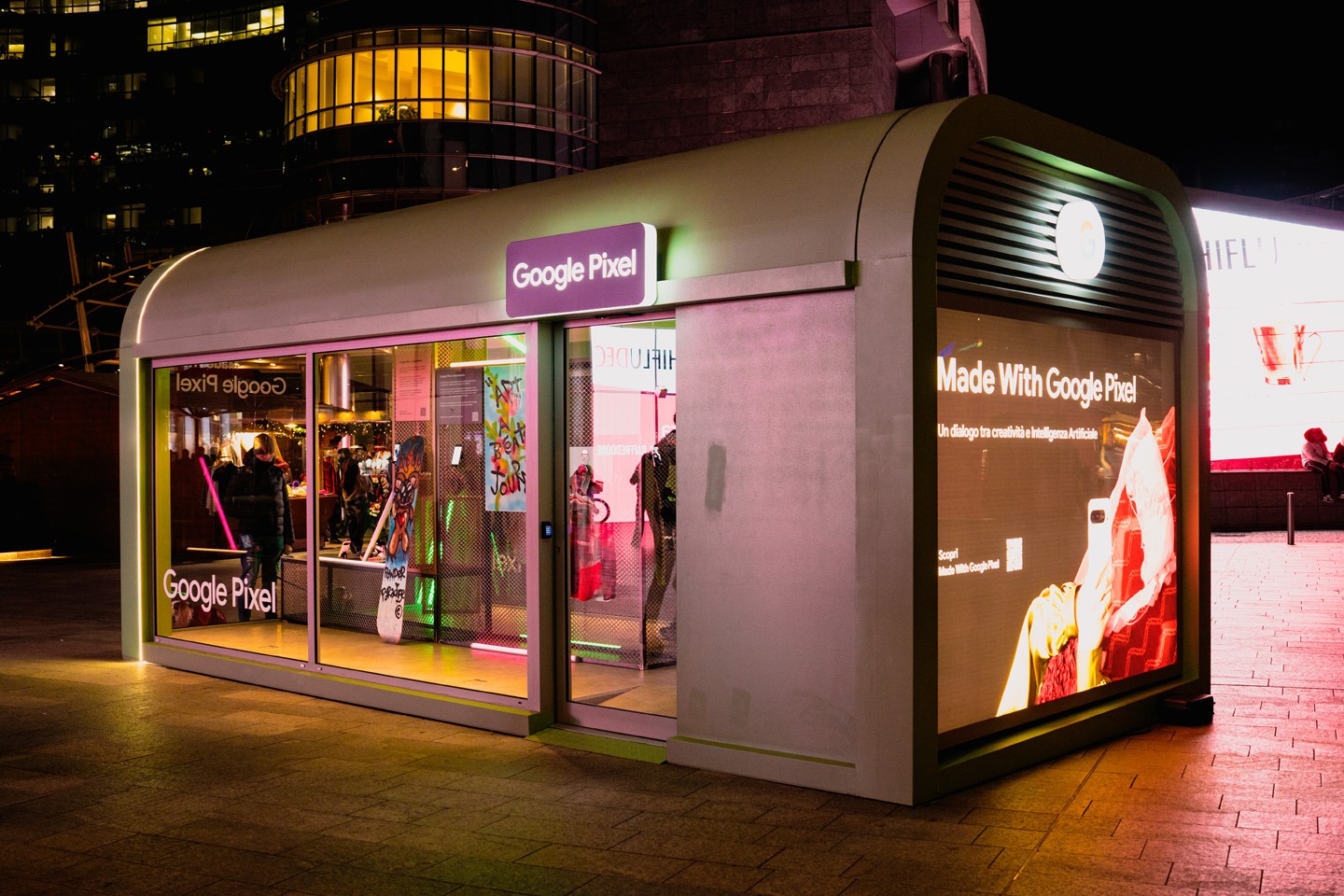 Il concept si basa su un palinsesto diffuso, un “anno dell’IA” raccontato attraverso 4 esperienze uniche: AI Connect per istituzioni e aziende, Unfold per il fashion system, IA per il Made in Italy per le PMI e Google Pixel per i consumatori. Ogni evento è stato pensato come esperienza immersiva, interattiva e multisensoriale, con installazioni, workshop, demo e performance artistiche. L’innovazione sta nella capacità di declinare l’IA in linguaggi diversi per ogni target, costruendo un racconto unitario e modulare.