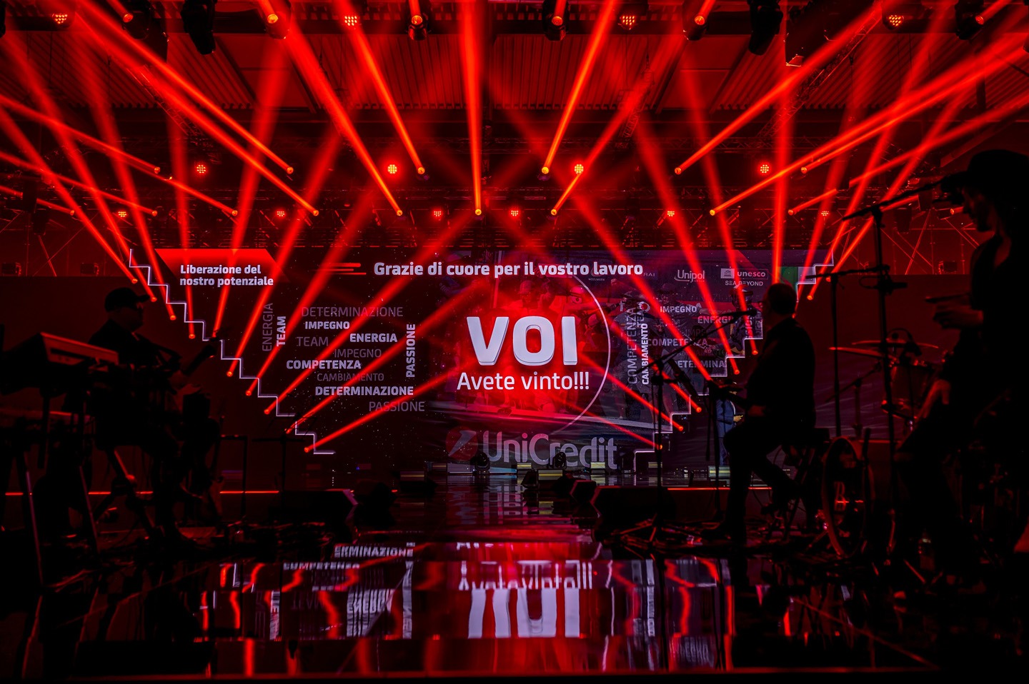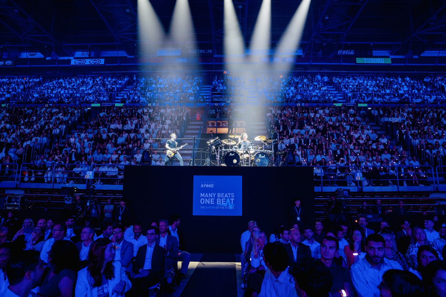 di KPMG, un unico battito coeso e potente nato dai battiti di ciascuno. Questo fil rouge che ha guidato l’intero design: una scenografia monumentale di 62×13 m integrava 19 batterie, protagoniste di una colonna sonora live che ha scandito ogni momento, trasformando lo spazio in un organismo pulsante. Il palinsesto di 6 ore ha intrecciato speech d’eccezione, performance artistiche, bracciali led sincronizzati, effetti luminosi e un concerto finale, costruendo un crescendo emozionale. Ogni dettaglio creativo è stato studiato da Simmetrico per celebrare al tempo stesso unicità e forza del gruppo, stimolando il coinvolgimento diretto del pubblico: significativa la sezione dedicata al coraggio, in cui giovani collaboratori sono saliti sul palco suonando accanto ai batteristi. Un evento che ha ridefinito il format corporate, fondendo creatività, innovazione e tecnologia in un’esperienza collettiva memorabile.